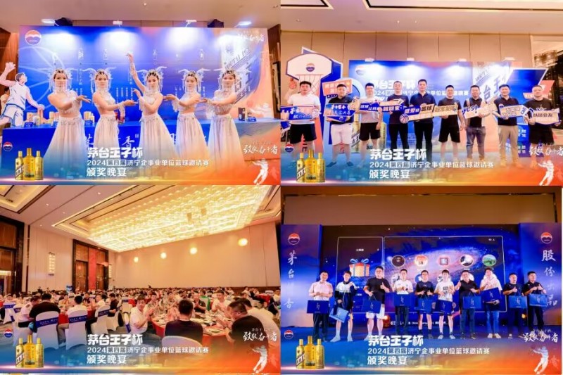 比赛结束后,全体队员和裁判员一起相聚万达嘉华酒店,参加了“茅台王子杯”2024第四届济宁企事业单位篮球宴请赛颁奖盛典。组委会为“最有价值球员”“体育道德风尚奖”“体育竞技奖”“运动风采奖”得主以及本届比赛的冠亚季军进行了颁奖。同时晚宴现场奉献了更多精彩纷呈的节目演绎、抽奖互动等,将晚宴氛围推向高潮。