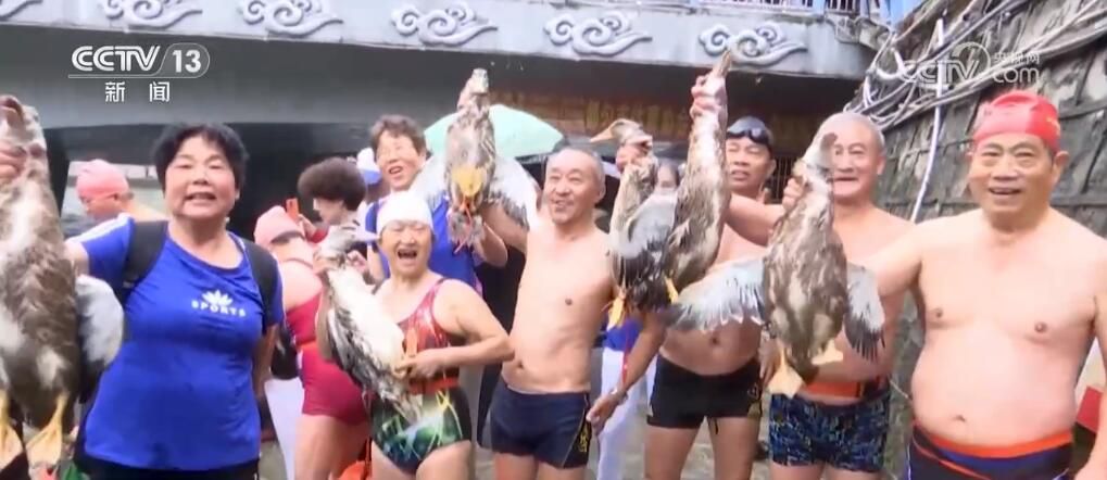 在四川南充蓬安县,嘉陵江畔的抢鸭子活动由当地冬泳协会组织,游泳爱好者们水性更佳,这也让竞争更显紧张激烈。十多只鸭子刚抛进江中就被争抢一空,现场欢乐的气氛也达到了高潮。
